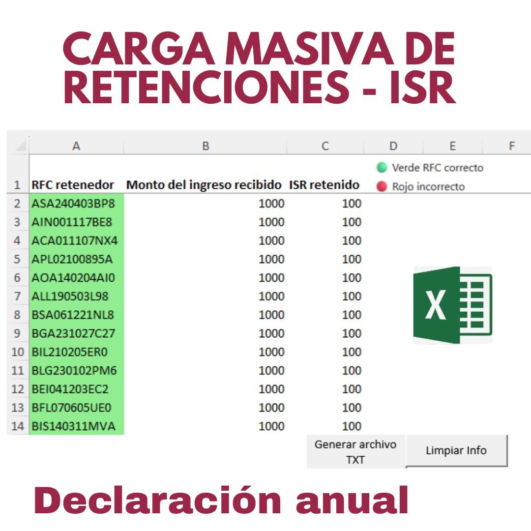 | Nombre | Carga masiva de retenciones de ISR |